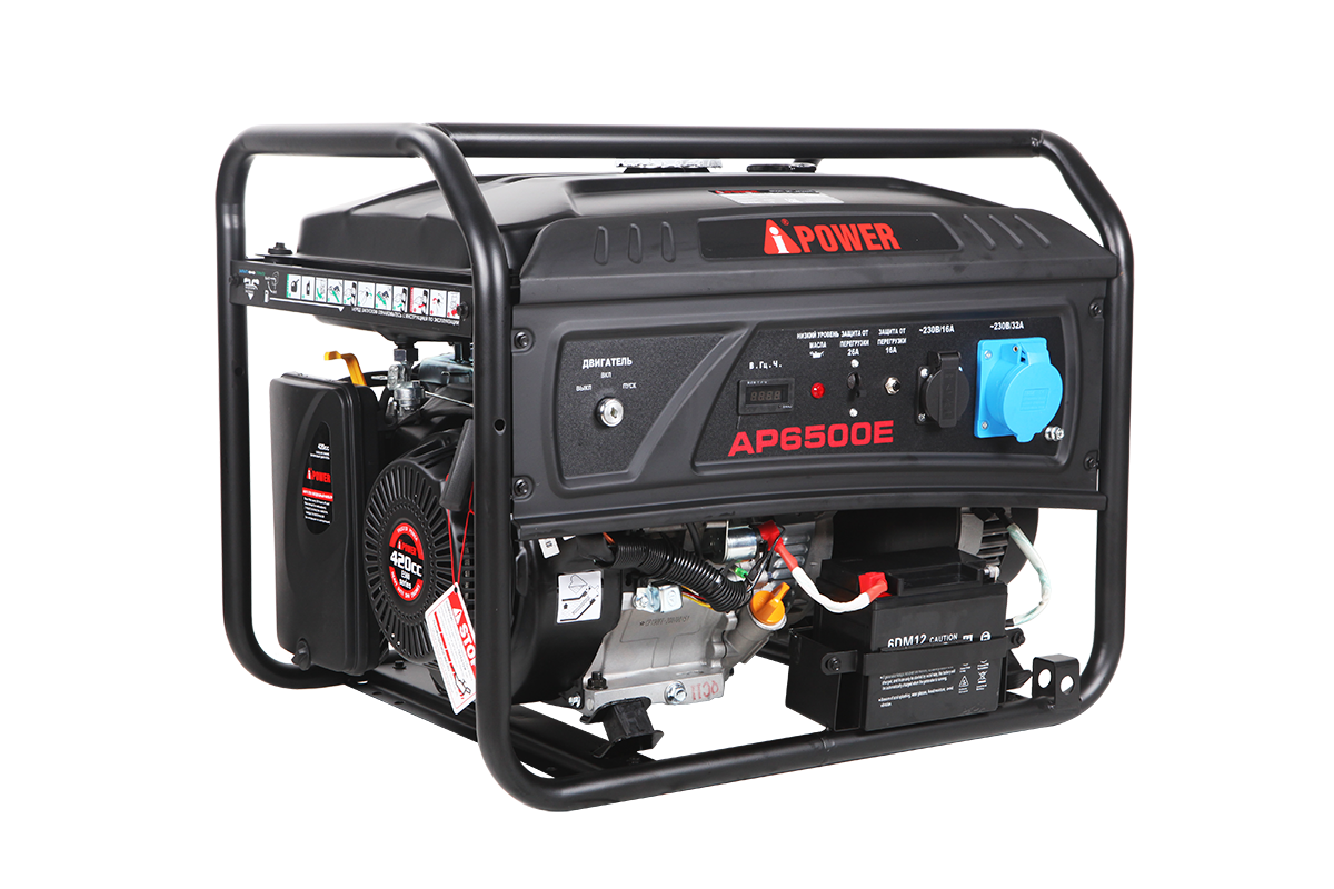 A-iPower AP6500E оснащен автоматами защиты, которые при перегрузке предотвратят выход из строя и остановят генератор. Также система защиты предотвратит запуск двигателя при снижении уровня масла. А от внешних повреждений защитит мощная рама.